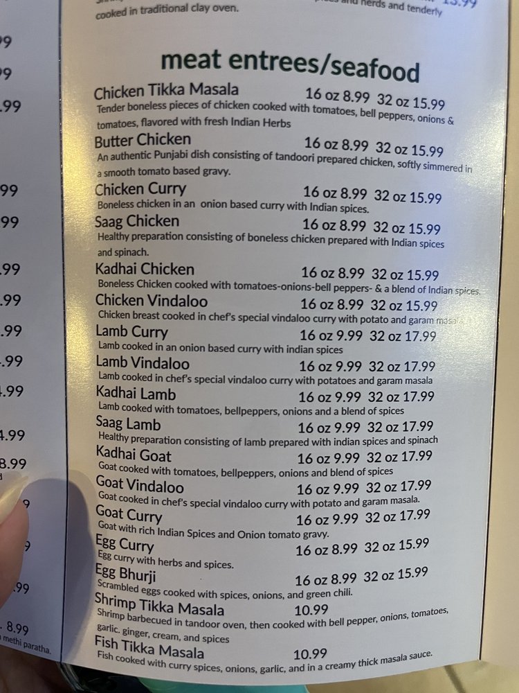 Goat cooked in chef's special vindaloo curry with potato and garam masala.